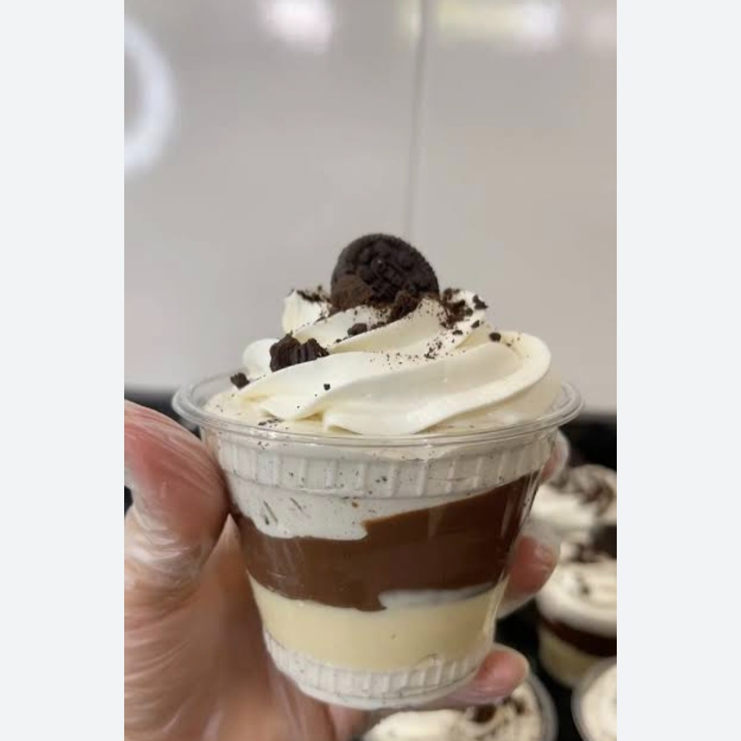 Mousse de ninho, mousse de chocolate, e brigadeiro com oreo