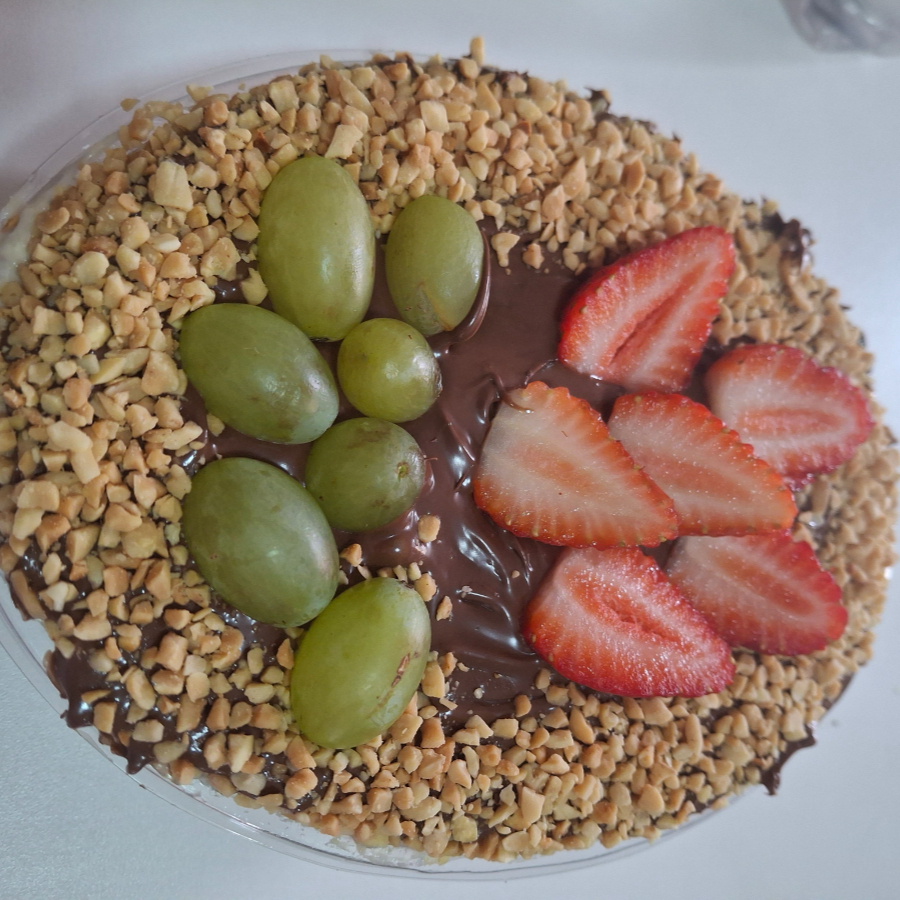 Brigadeiro branco, uva, morango, nutella e amendoim