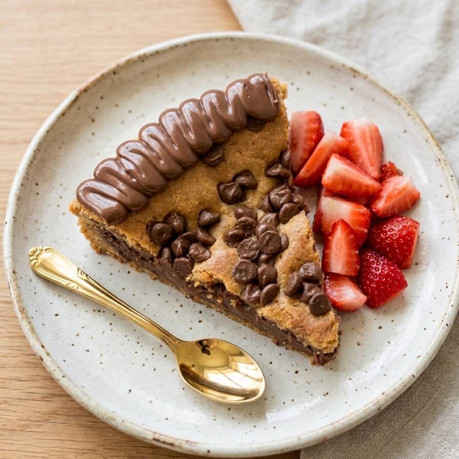Fatia de torta cookie com Nutella e morangos frescos