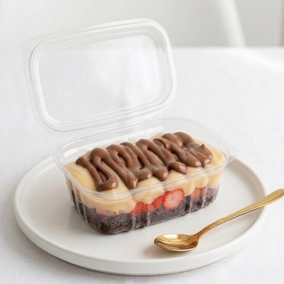 Brownie molhadinho morangos frescos brigadeiro cremoso de ninho e Nutella 250ml