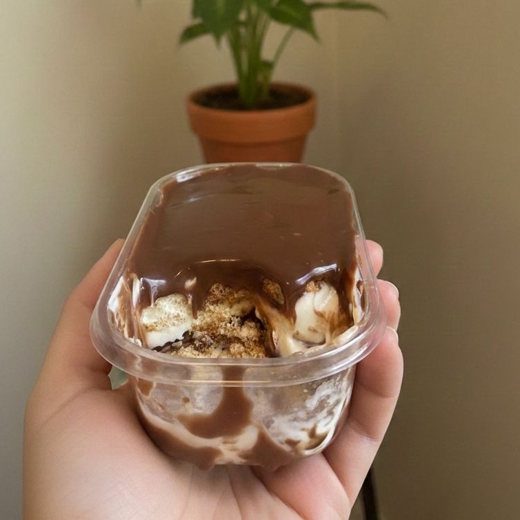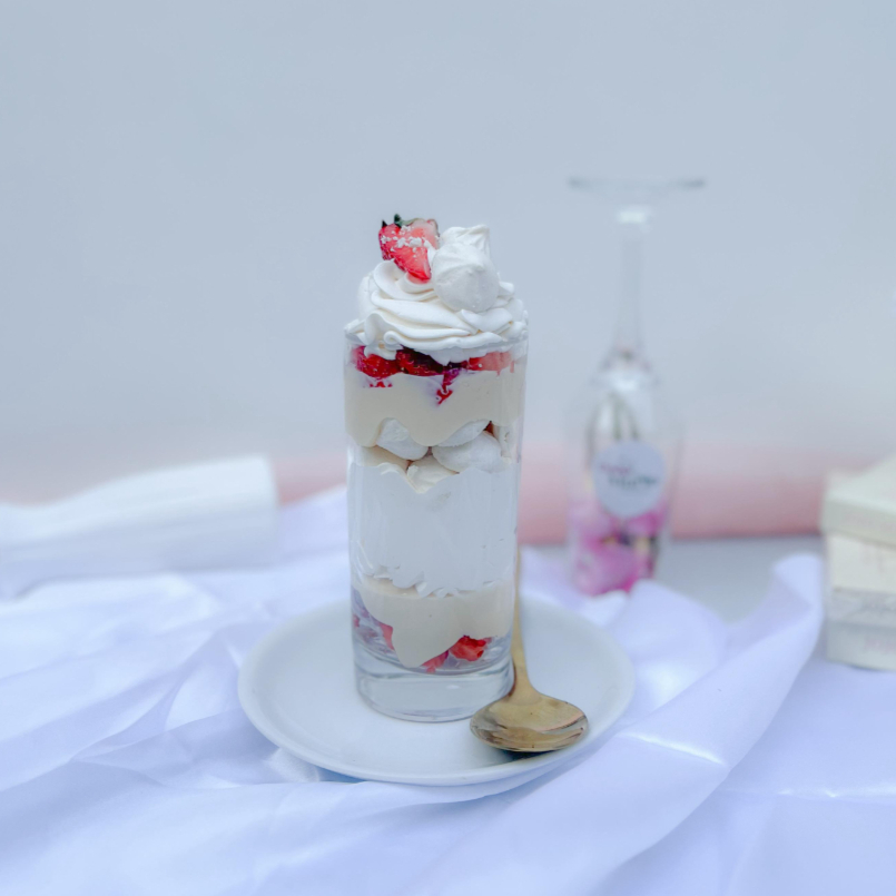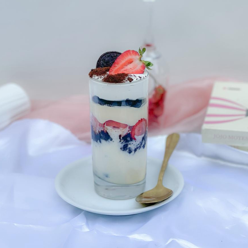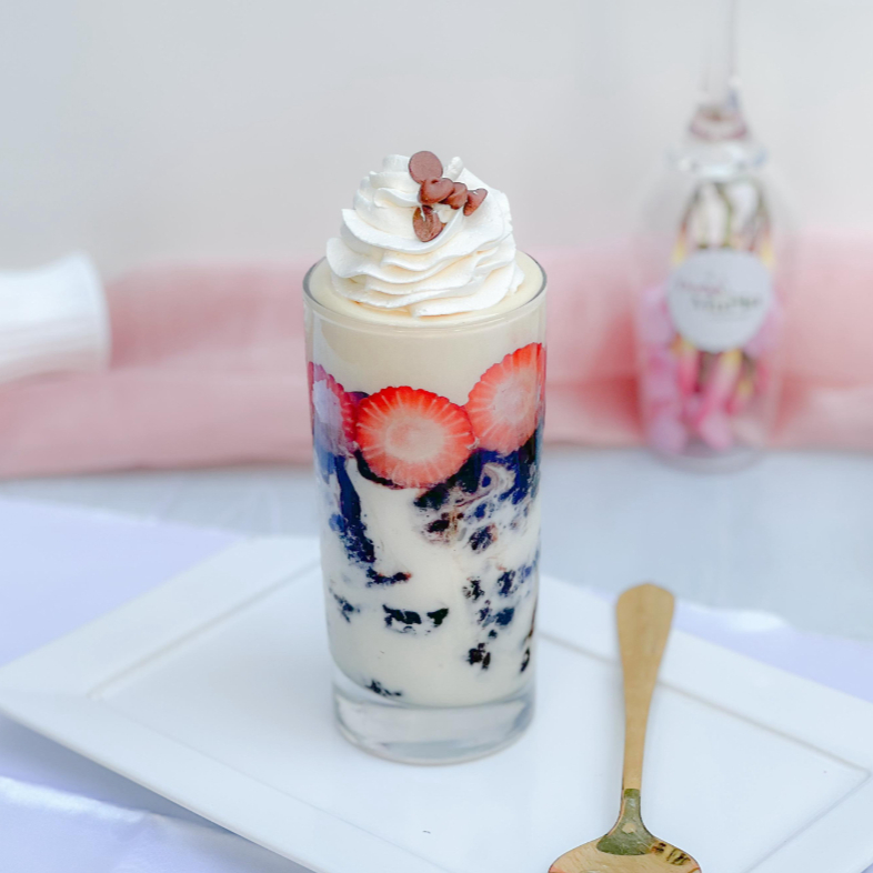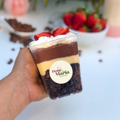 Imagine um creme de Ninho Dona Maria, irresistivelmente marcante e com um sabor único que remete à infância. Agora, adicione pedaços macios e decadentes de brownie, com sua textura densa e fudgy, que se desfaz na boca em uma sinfonia de chocolate. Para trazer um toque de frescor e doçura, morangos frescos são delicadamente dispostos sobre o creme, adicionando uma explosão de sabor e um contraste irresistível. E para elevar ainda mais a experiência, uma generosa camada de brigadeiro branco cremoso, com sua suavidade envolvente e doçura delicada. Por fim, uma cobertura de chantininho, com suas gotas de chocolate ao leite que derretem na boca, trazendo um sabor intenso e uma experiência irresistível