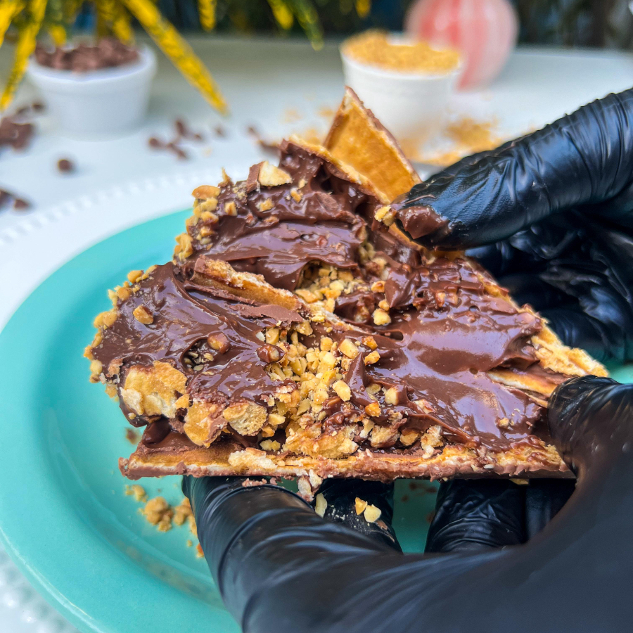 Massa macia por dentro e levemente crocante por fora, recheado com uma generosa camada de Nutella quente e cremosa que escorre a cada mordida. Irresistível do primeiro ao último pedaço.