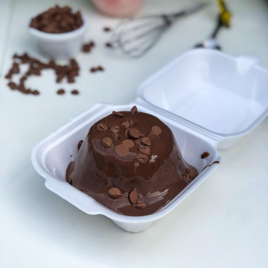 Bolo de chocolate molhadinho, afogado no nosso amado Danette, finalizado com gotas de chocolate ao leite.