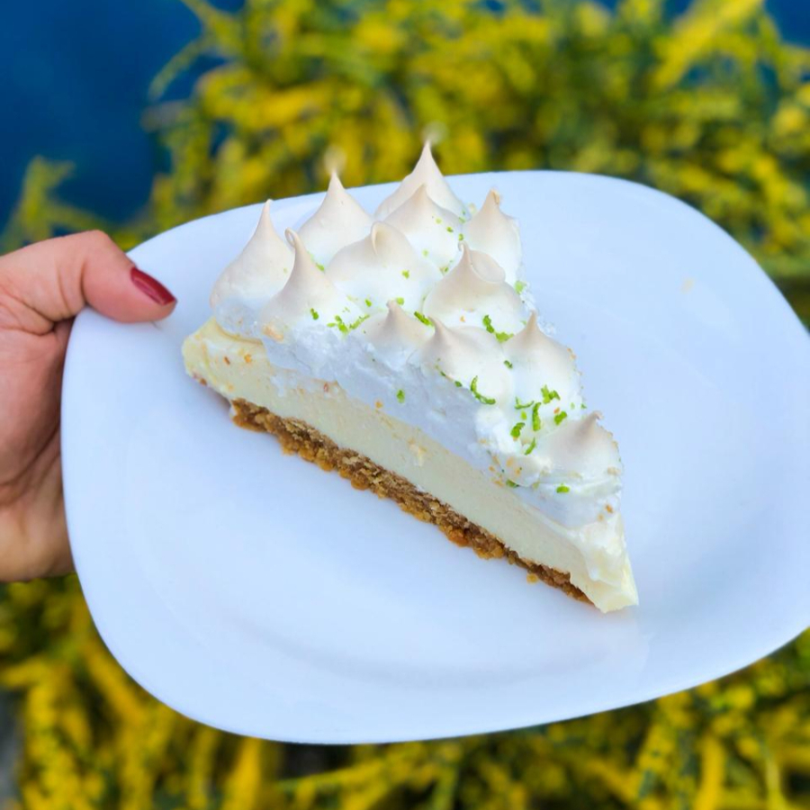 Base de biscoito cocante, mousse de limão azedinho finalizado com chantininho e raspas de limão.