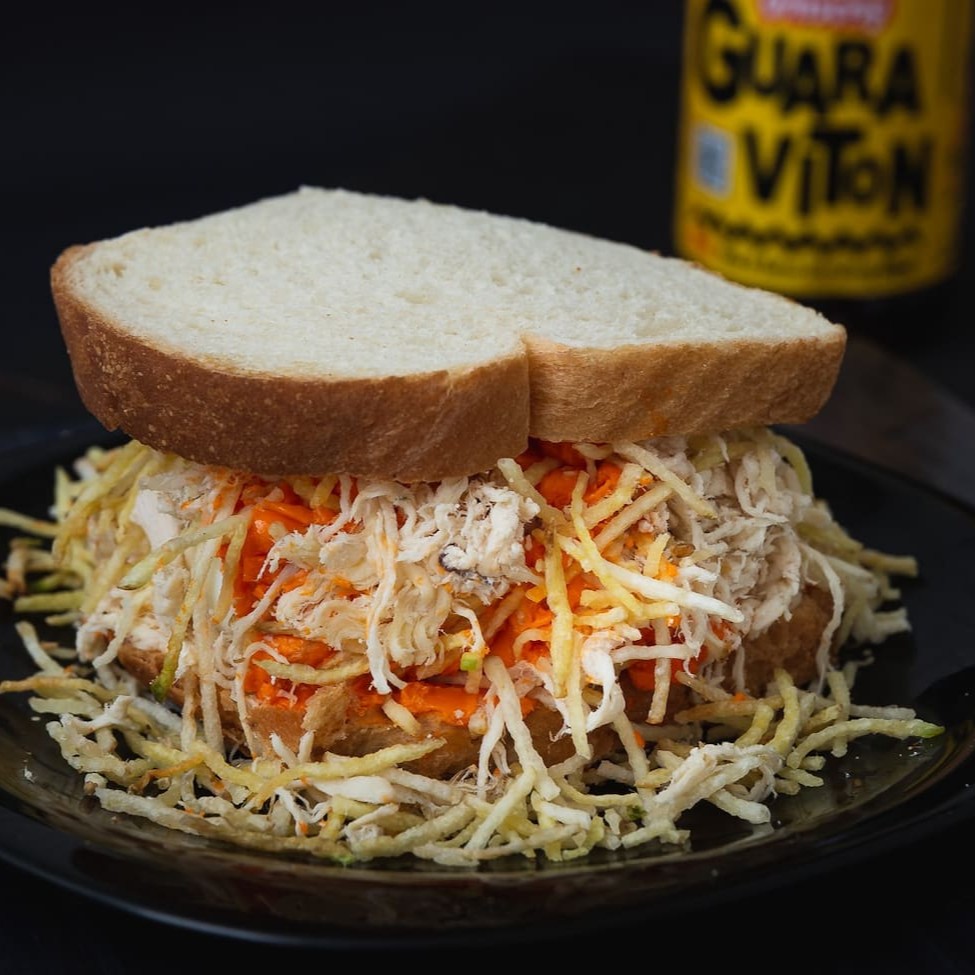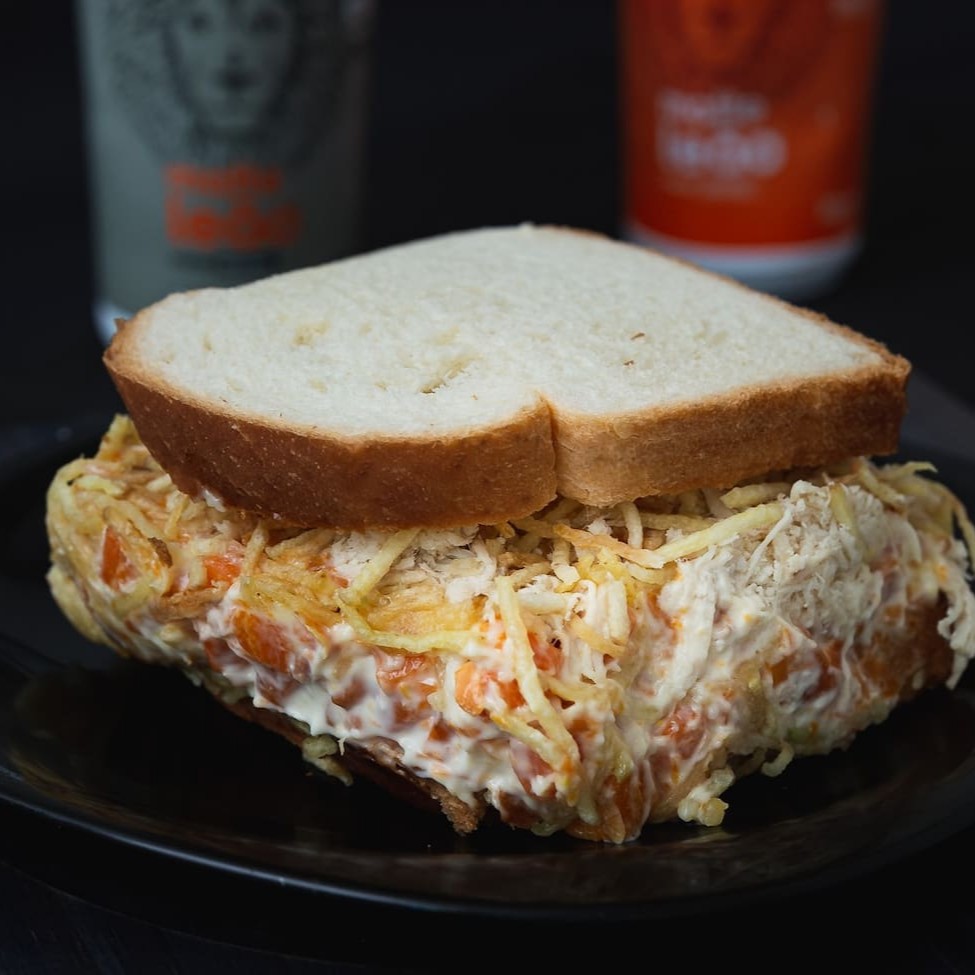Um dos mais pedidos do Cardápio Sanduiche do Marcelo Oficial -Frango com Cheddar - Frango Desfiado , Ovos de Codorna , Batata e cheddar Sanduíche Marcelo Natural de Itacoatiara: Frango Desfiado Temperado, Ovos de Codorna, Batata Palha Crocante e Delicioso Queijo Tipo Cheddar. Nossos Sanduiches são fabricados e vendidos diariamente fresquinho do jeito que você já conhece, tradição e qualidade agora no conforto da sua residência, Pede Agora seu Sanduiche Natural Marcelo Oficial