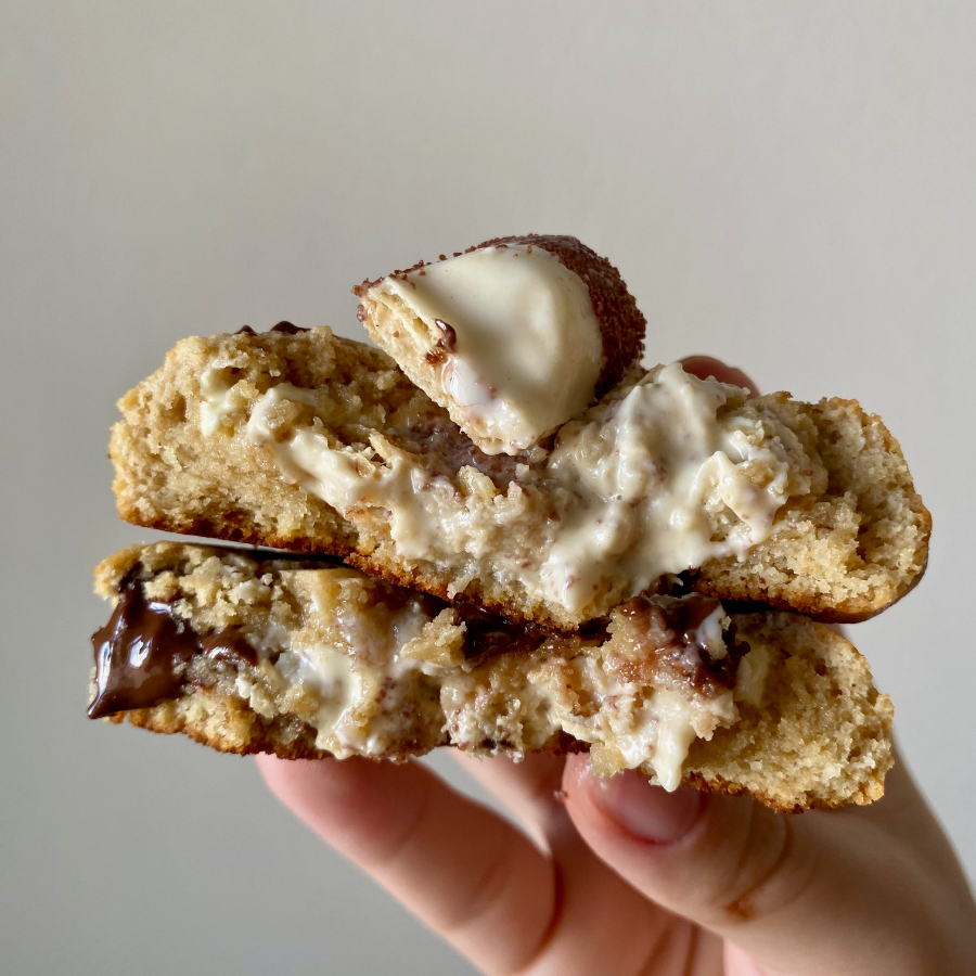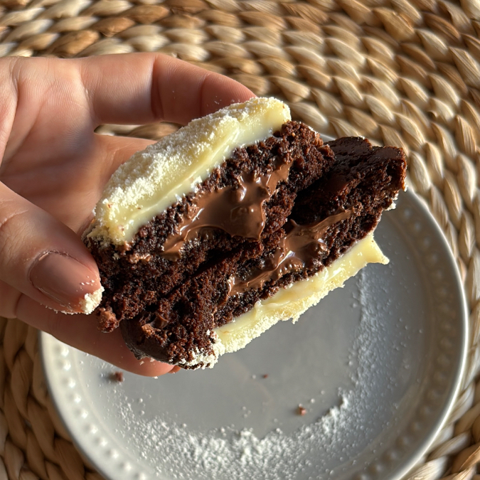 Cookie recheado com creme inspirado no famoso bombom kinder. Doce, Leve e viciante! Aproximadamente 85 gramas cada