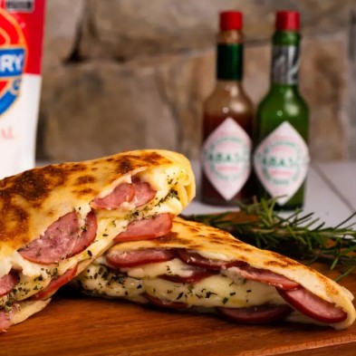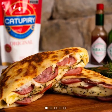 Calabresa, Mussarela, Catupiry e Molho de tomate