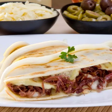 Carne Seca, Catupiry, Mussarela, Cebola, Alho torrado