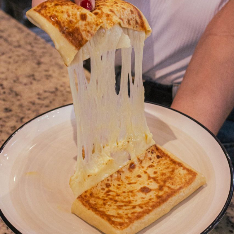 Nosso Waffle recheado com carne seca e requeijão cremoso e coberto por queijo muçarela maçaricado bem derretido