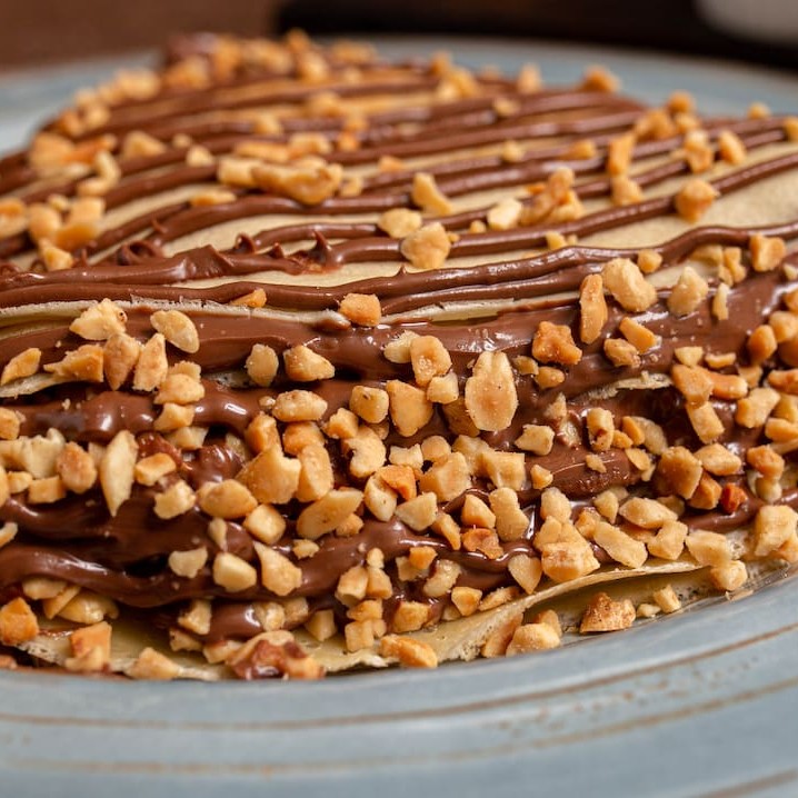 Delicioso crepe recheado com chocolate preto ou branco Nestlé