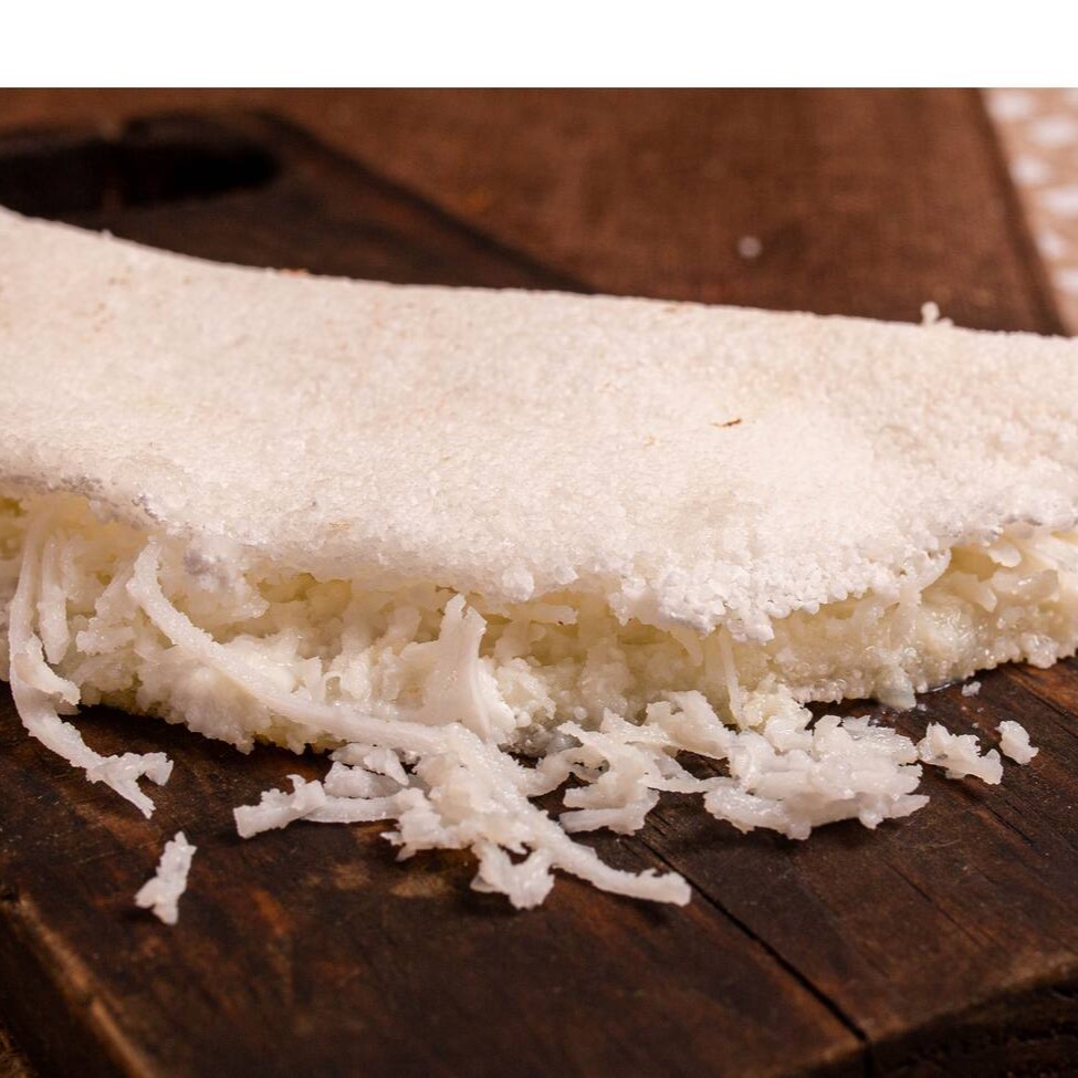 Tapioca recheada com doce de leite caseiro e muuuuita paçoca!