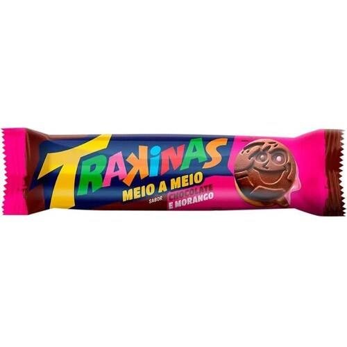 Biscoito Recheio Chocolate E Morango Trakinas Meio A Meio Pacote 126g