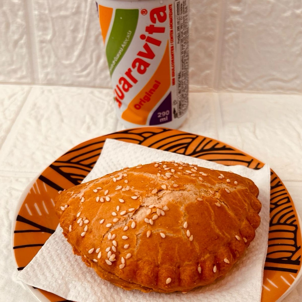 Delicioso pastel de forno assado, no sabor frango ou queijo. Acompanhado de guaravita. Informar no pedido o sabor do pastel: queijo ou frango