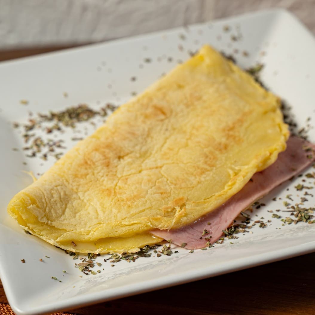 Feita com farinha de tapioca e ovo, nossa crepioca é uma ótima pedida para o café da manhã ou um almoço leve. Recheada com presunto e queijo derretido, ela combina praticidade, sabor e leveza em uma refeição que dá aquela sensação de conforto a qualquer hora do Dia.