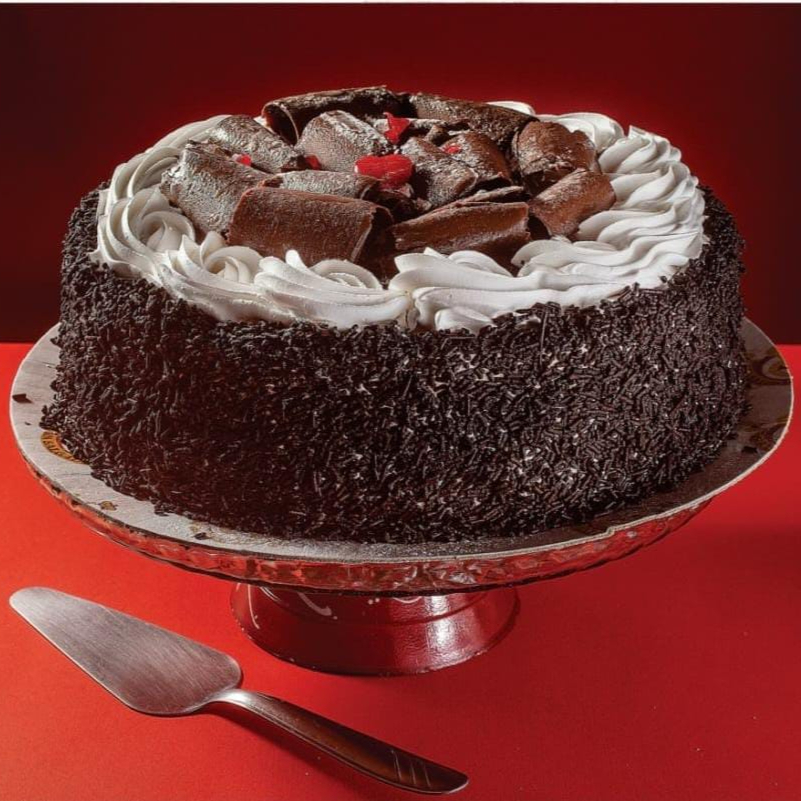 Massa pão de ló de chocolate, umedecida com calda de chocolate. Recheio de chantilly baunilha com cereja e brigadeiro de colher. Importante: As Tortas são entregues congeladas e precisam de aproximadamente 1h30 para descongelamento antes de serem servidas.