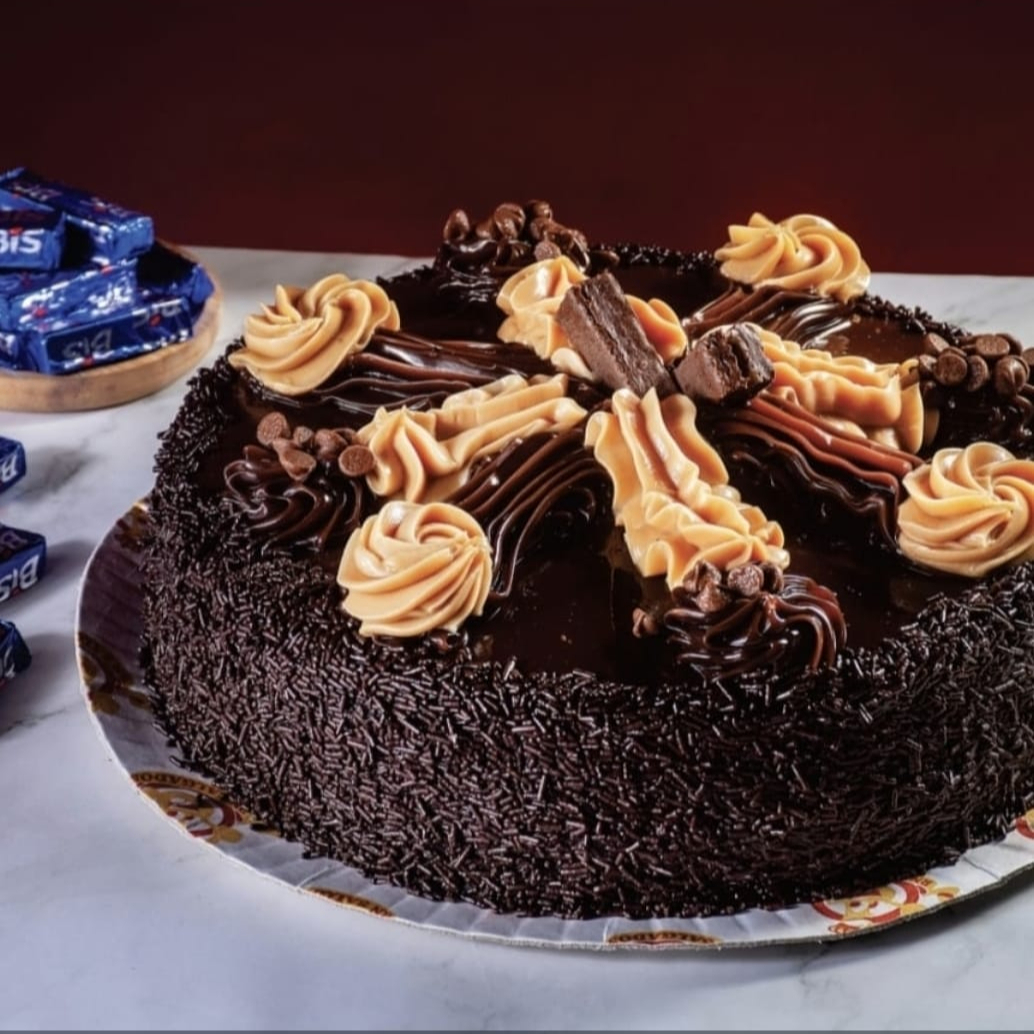 Massa pão de ló de chocolate, umedecida com calda de chocolate. Recheada com brigadeiro preto, brigadeiro branco e pedaços crocantes de Bis. Importante: As Tortas são entregues congeladas e precisam de aproximadamente 1h30 para descongelamento antes de serem servidas.