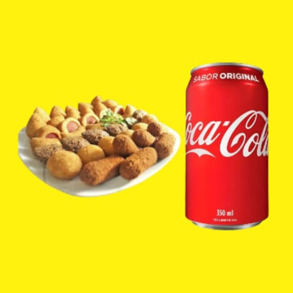25 salgadinhos sortidos + 1 coca lata 350ml