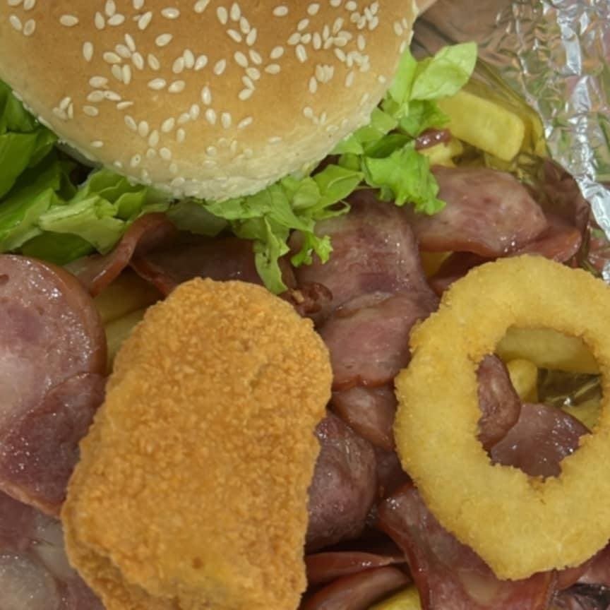 1 x tudo 250 g de batata isca de frango 1 nugget 1 anel de cebola