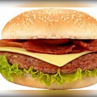 Pao carne queijo bacon e salada