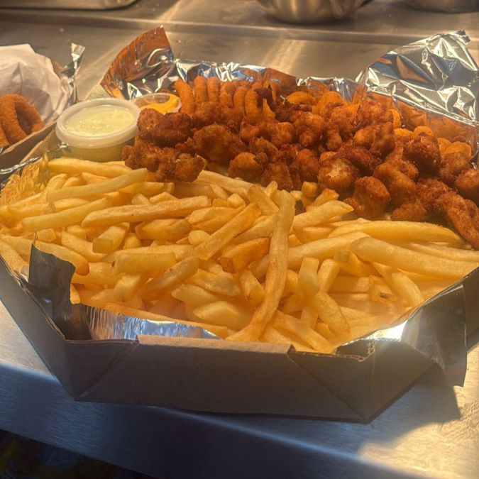 2 X Tudo , Nuguet, Anel De Cebola ,500 G De Batata , Isca De Frango E Uma Porçao De Salgadinho