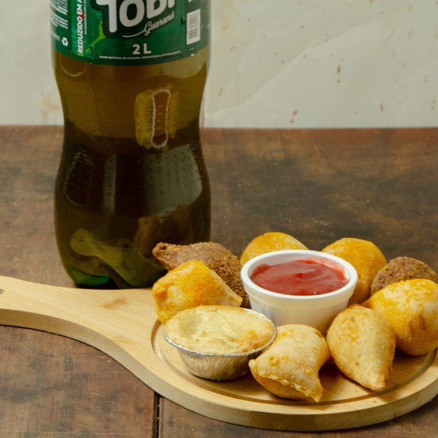 50 minis salgados sortidos (13g cada) + 2 Guaraná antártica (200ml)