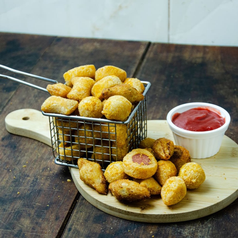 50 salgados fritos (55g cada).