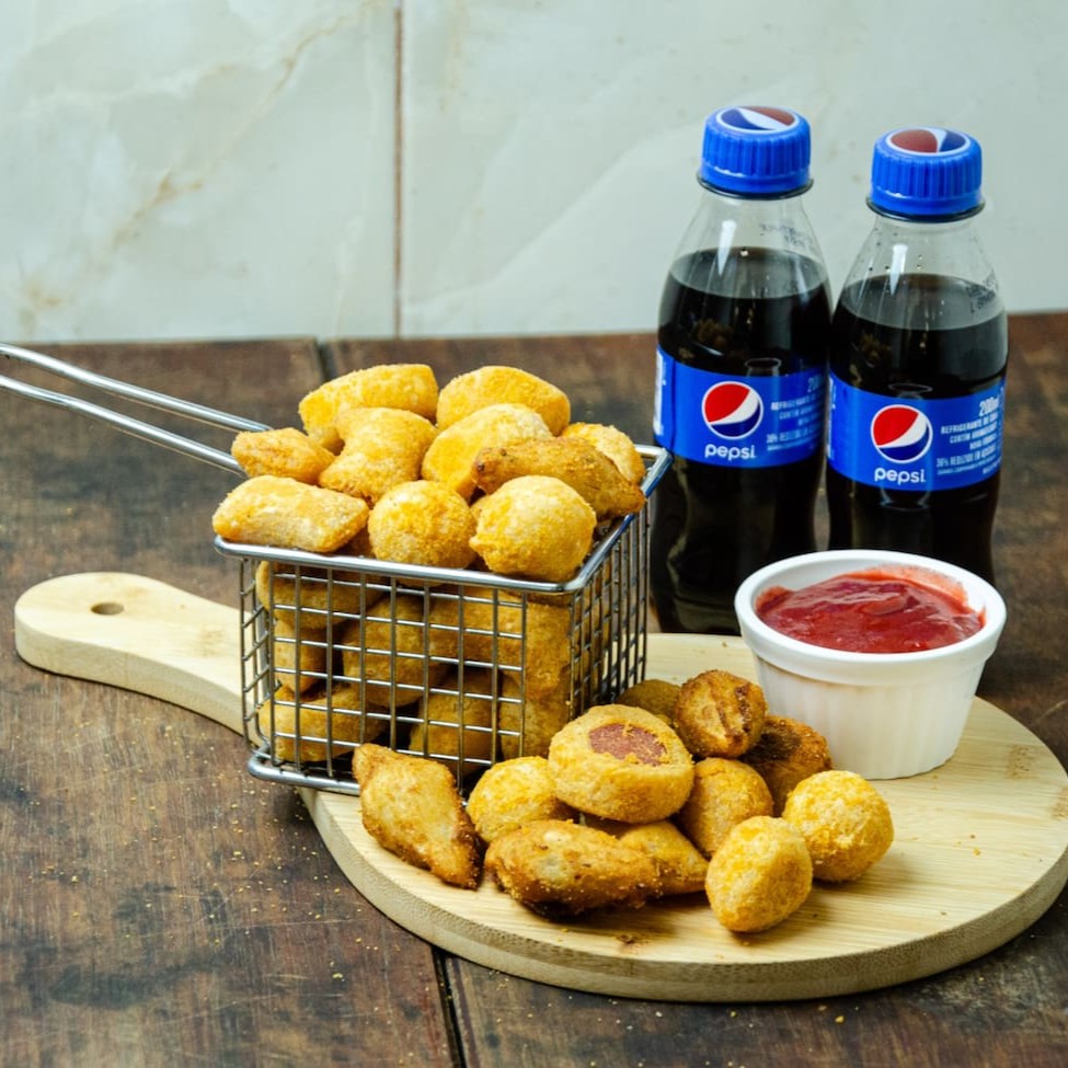 50 Minis Salgados + 2 Pepsi Cola (200ml)