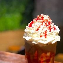 CAPPUCCINO GELADO COM CALDA OPCIONAL: *CHOCOLATE *CARAMELO *MORANGO