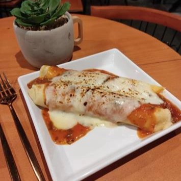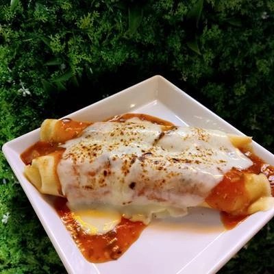 PORÇÃO COM DUAS UNIDADES DE PANQUECA, ARROZ OPCIONAL, MOLHO: BRANCO OU VERMELHO. PROTEINA: CARNE MÓIDA, FRANGO OU QUEIJO C/PRESUNTO.