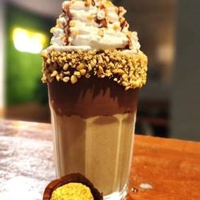 CAPPUCCINO, AMENDOIM, CREME DE AVELA, CHANTILY , BOMBOM DE FERREIRO
