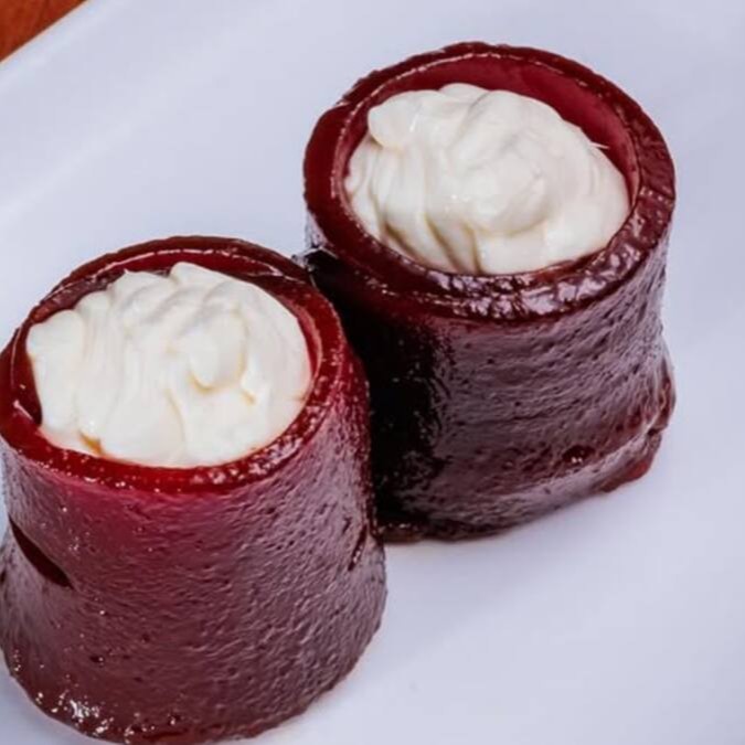 Joe Flambado com creme cheese, queijo coalho e geleia de pimenta