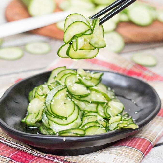 Salada de pepino japones, em conserva no molho de arroz e gergelim