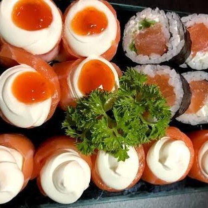 (salmão, camarão, Kani e Creme Cheese)