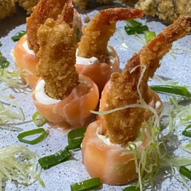 Camarão, creme cheese, Teriaki e cebolinha