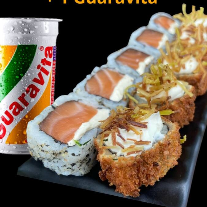 5 Und Uramaki Filadélfia + 5 Hot Com Alho Poró + 1 Guaravita