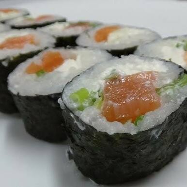 Arroz enrolado com salmão e creme cheese