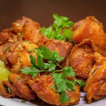 Cubos de salmão, c/ sal, cebolinha e alho poró crispy