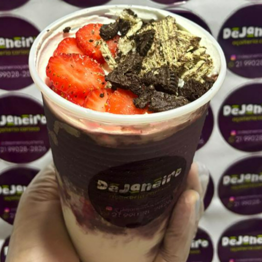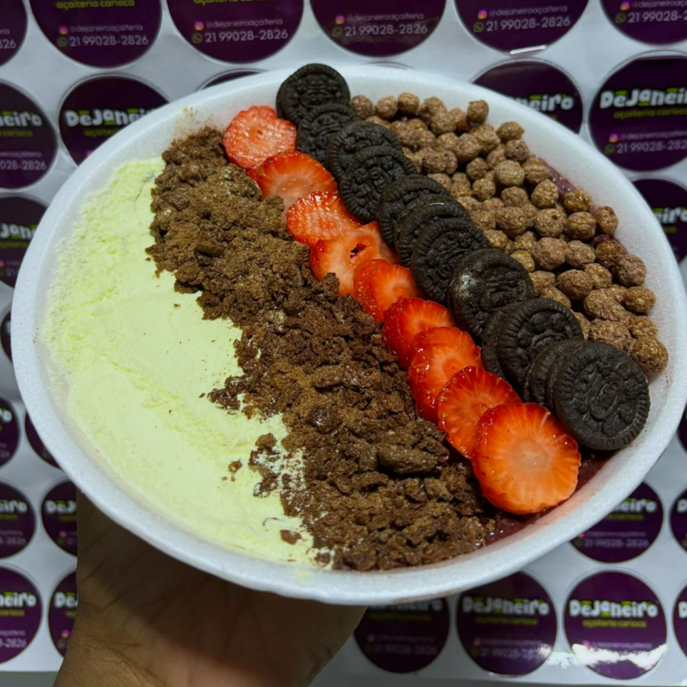 1 Cobertura + 5 Complementos + Fruta + Adicionais (aproximadamente 750ml)