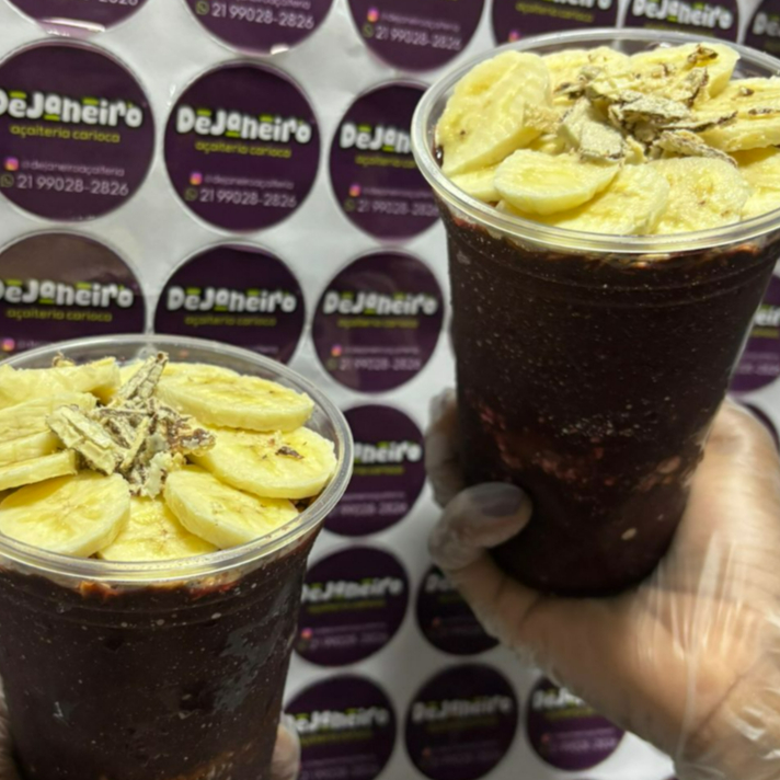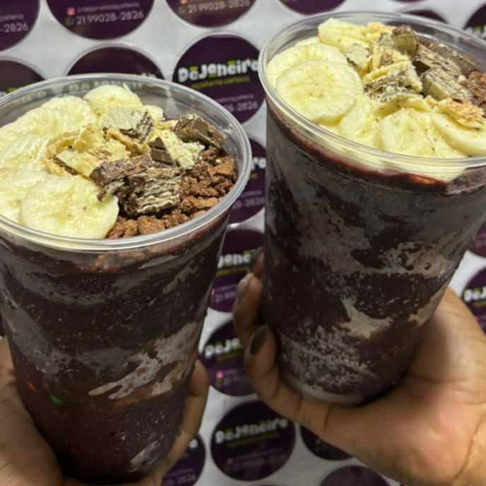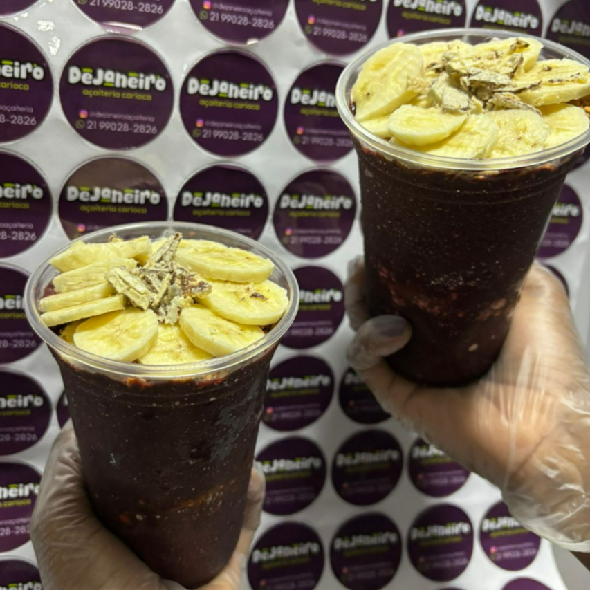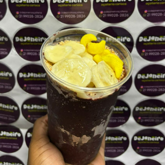 Delicioso açaí refrescante batido com banana e leite condensado. Escolha até 2 complementos para deixar do seu jeito.