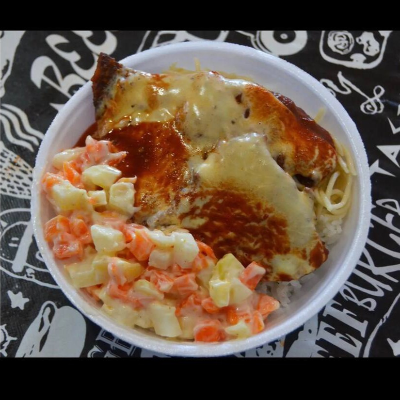 Pode escolher 1: salpicão, Macarronese ou fritas.