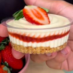 Brigadeiro de leite Ninho, brownie, brigadeiro de chocolate e pedaços de morangos (copo 200g)