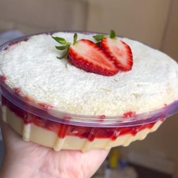 Massa: Baunilha. Recheio: Brigadeiro de leite Ninho Apx.: 200g a 300g