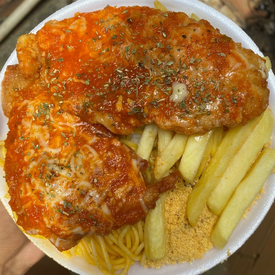 Filé De Frango A Parmegiana Com Batata Frita
