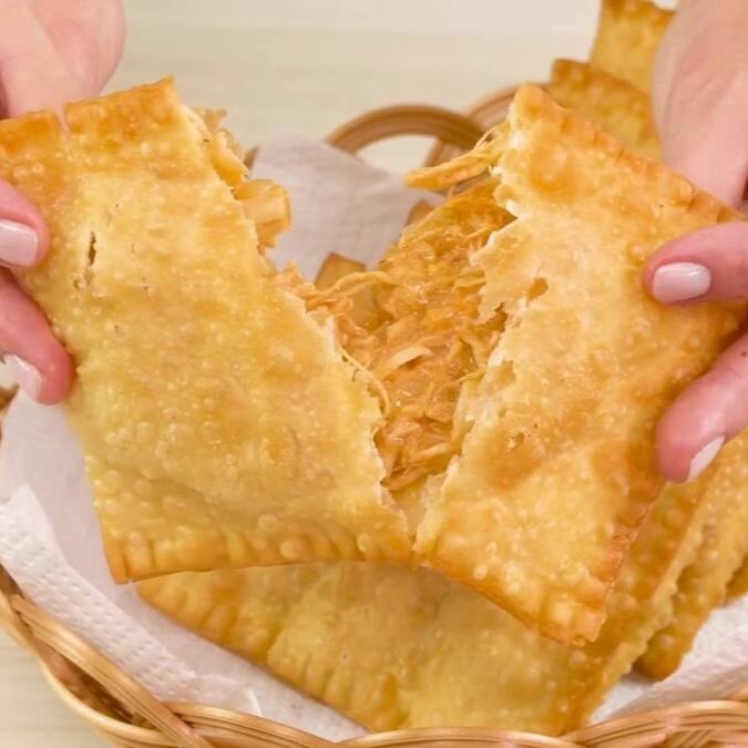 Delicioso pastel de carne seca com queijo (massa de pastel com carne seca com queijo mussarela)