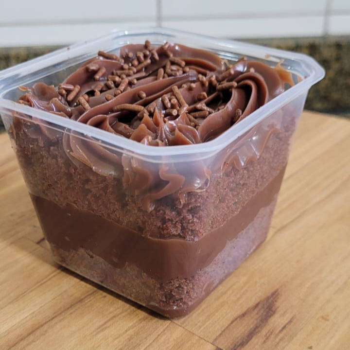 Brigadeiro de chocolate tradicional cremoso, finalizado com granulado, para comer de colher. Copo com aproximadamente 140g.