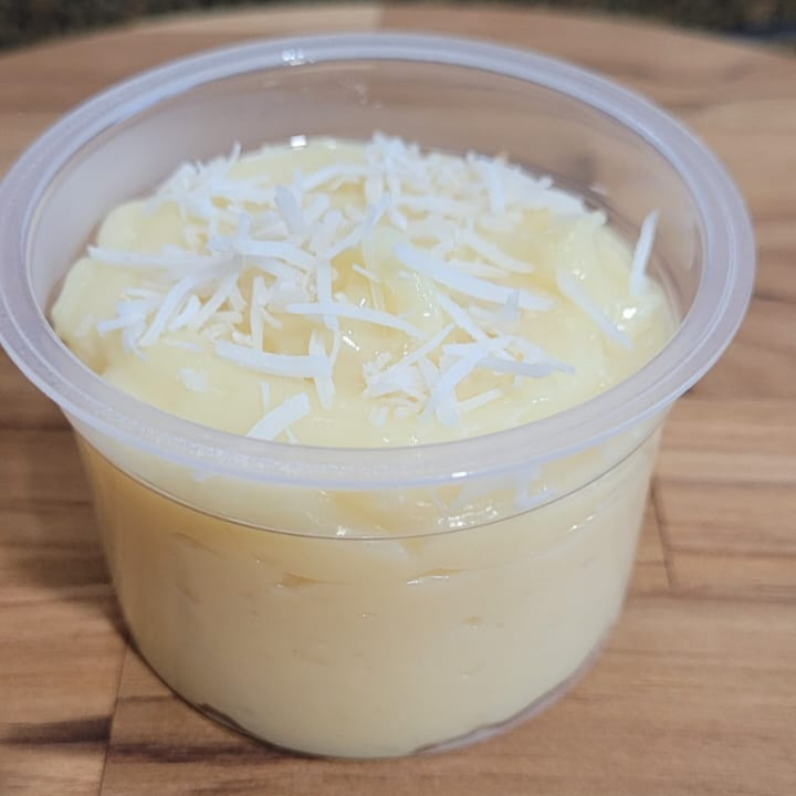 Brigadeiro cremoso de coco, finalizado com coco ralado, para comer de colher. Copo com aproximadamente 140g.