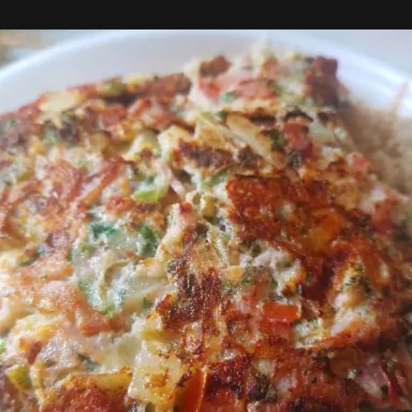 Nosso prato vem servido de arroz, feijão, macarrão,farofa,purê e um delicioso omelete de queijo com presunto