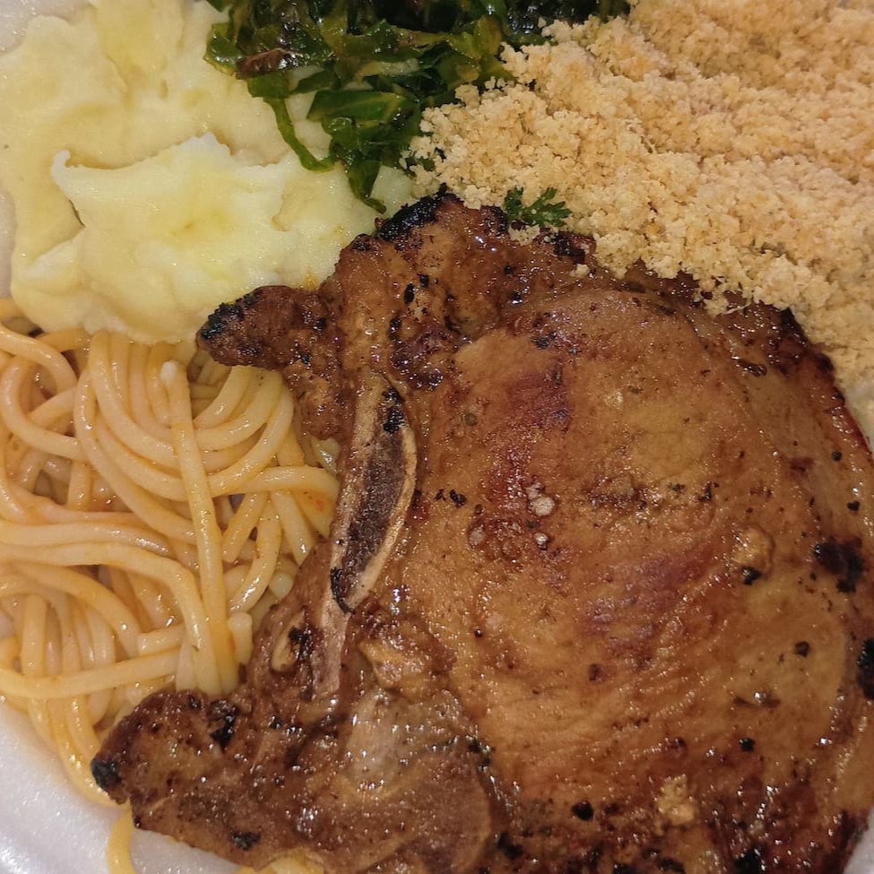 Nossa deliciosa marmita e servida com arroz ,feijão, macarrão,farofa,couve e carré tudo sempre muito fresquinho