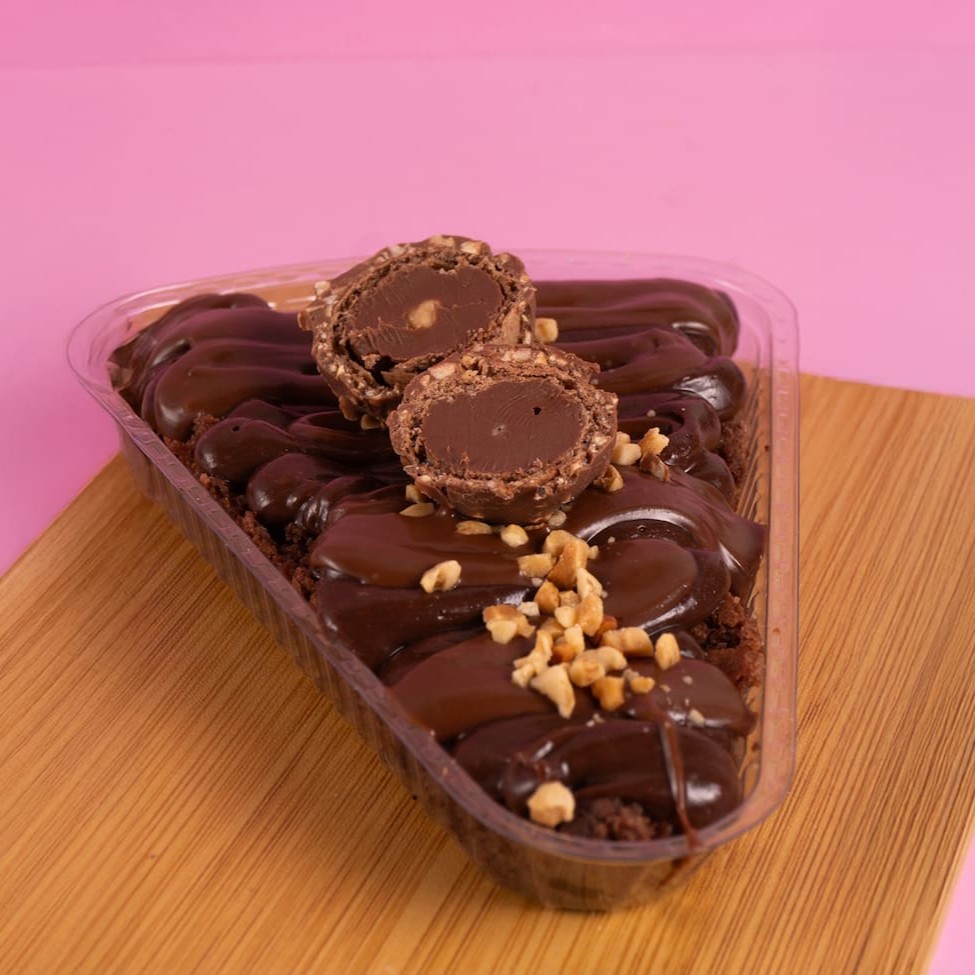 Uma fatia generosa de brownie macio e úmido, com aquela textura densa e irresistível que derrete na boca. Por cima, uma camada cremosa e generosa de brigadeiro. Para elevar essa tentação, espalhamos Nutella purinha, trazendo aquele toque aveludado e intenso de chocolate com avelã. O crocante do amendoim picado cria o contraste perfeito, enquanto pedaços do lendário Ferrero Rocher adicionam um toque de luxo !! -----------------tags------------------- Entrega rápida , desconto , promoção , 0,99 , 0800 , off , cupom , barato , melhor preço , oferta , frete grátis , descontão , preço baixo , Doces , bolos , brigadeiro , docinhos , kit festa , aniversario , bolo de pote , chocolate , morango , sobremesa natalina , Nutella , copo da felicidade , brownie , confeitaria , doceria , gourmet , bombom , piscina , ganache , caseiro , vovó , bento cake , vulcão , red velvet , trufas , banoffe , pudim , doce de leite , pão de mel , Oreo , Kit Kat , ferrero Rocher , cheese cake , tartelete , Ninho