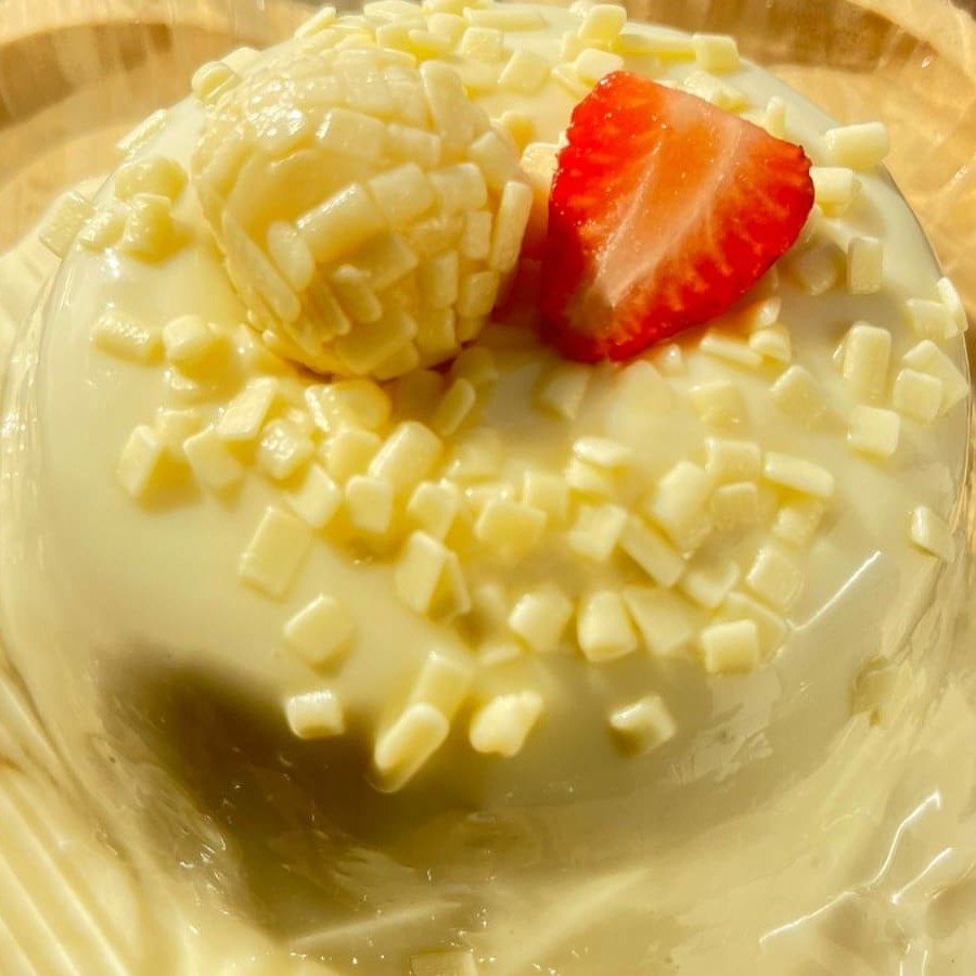 Massa Branca com cobertura de brigadeiro cremoso de Coco e finalizado com raspas de Coco.